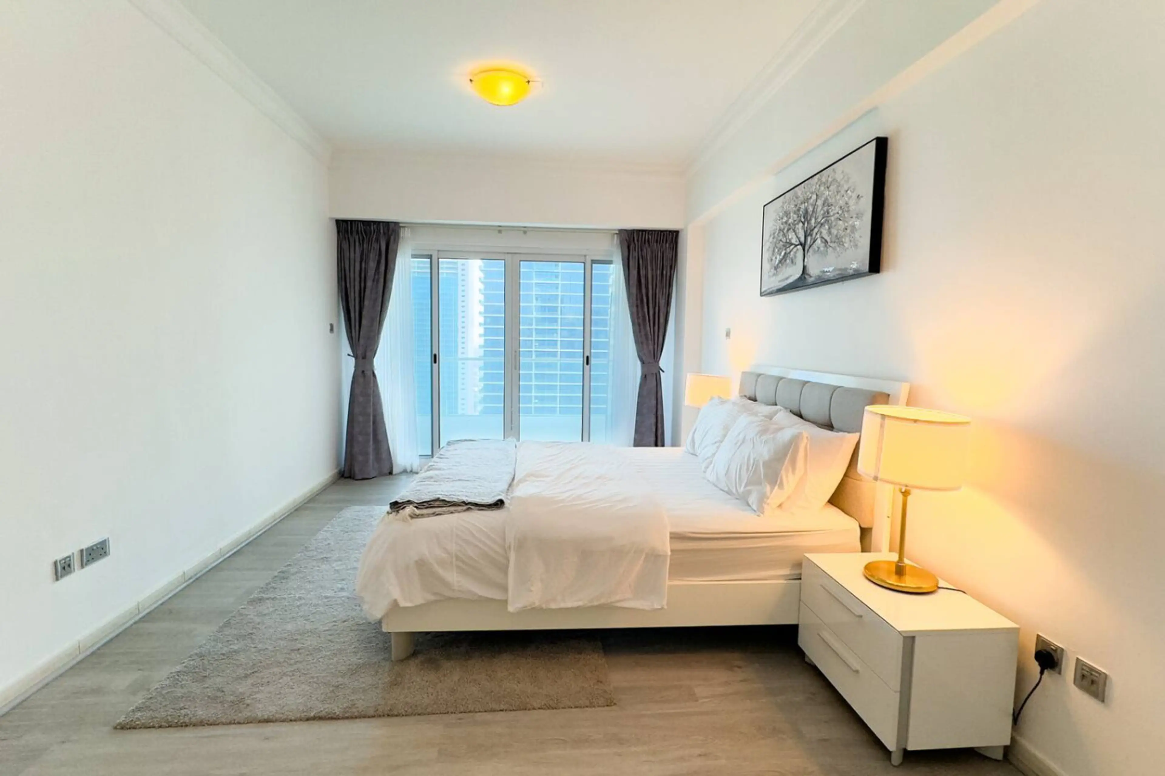 Welcome to your home at Jumeirah Lake Towers (JLT)! This modern apartment sits in Dubai’s vibrant business hub, surrounded by serene lakes. Spacious 2-bedroom with panoramic lake vistas! Swim, use the gym,and FREE cleaning after checkout (weekly for long stays). Free parking. Stroll easily to rest...